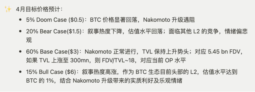 目前其价格不算便宜,可能已在 BTC 上涨基础上部分 Price in 了升级的利好因素。但考虑到其长期潜在的高发展上限,可在一定价格作为 BTC L2 的 Beta 配置,重点可以观察升级后其 DeFi 生态的进展及后续 sBTC 的采纳情况。
