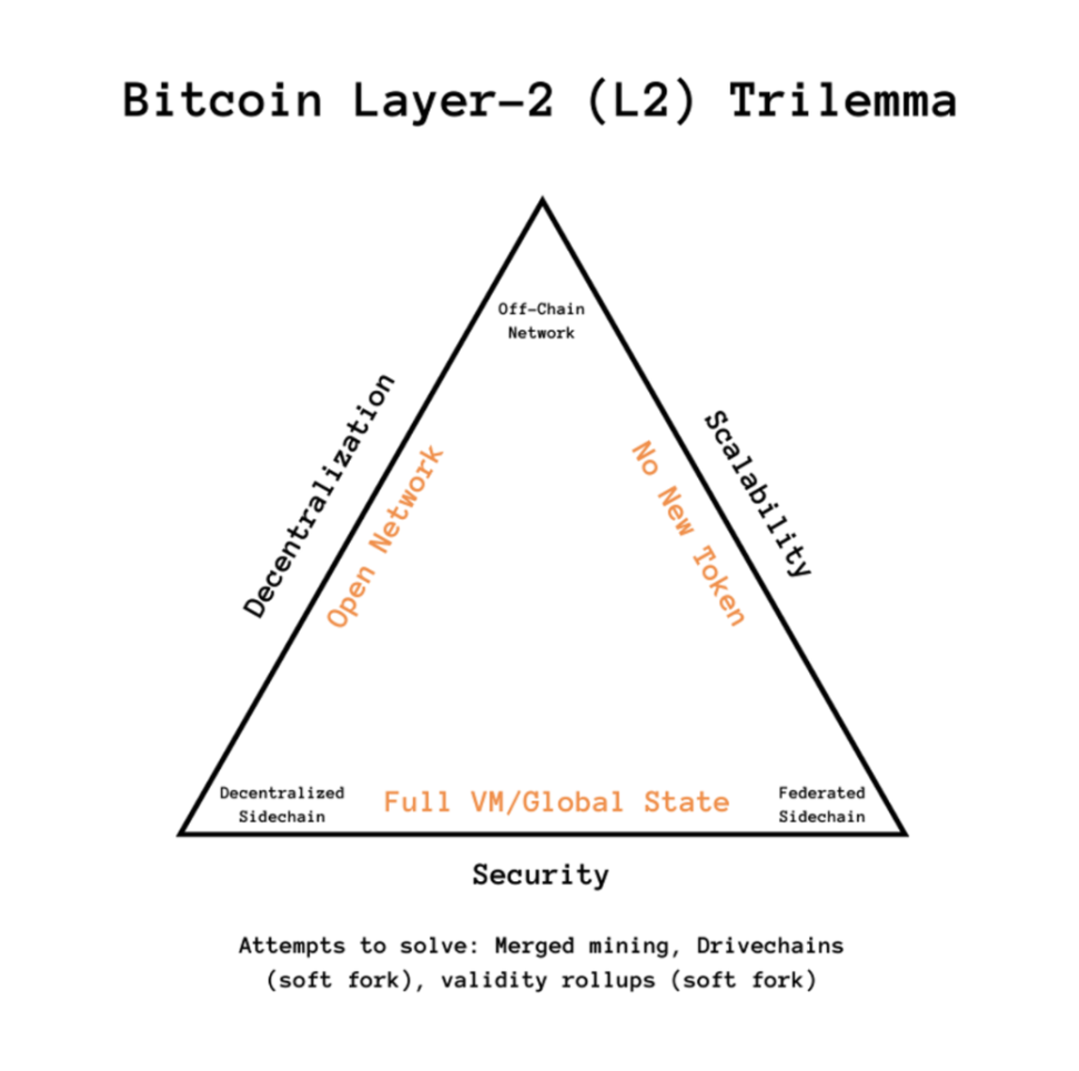 我们从 Muneeb 在推特中分享过的比特币不可能三角出发来看 Stacks 的设计思路: