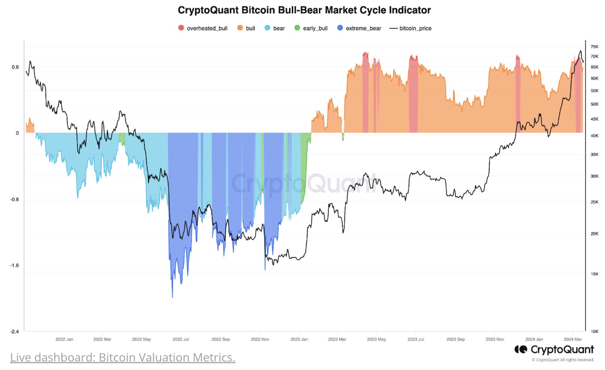 CryptoQuant:价格指标尚未接近牛市顶峰,比特币上涨周期将持续