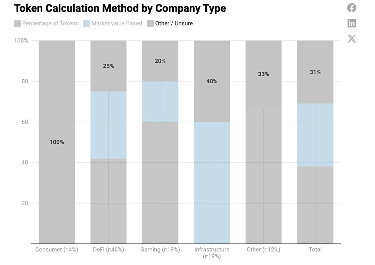 游戏和“其他”公司更有可能使用“代币百分比”方法,而基础设施更有倾向使用基于市值的方法。