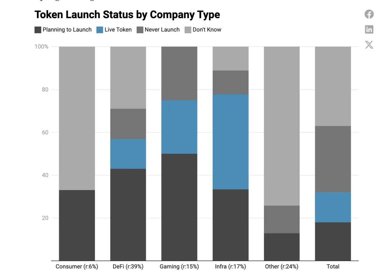 所有消费者和“其他”公司要么不确定是否会发行代币,要么最终不打算发行代币,因此大部分公司只提供股权。