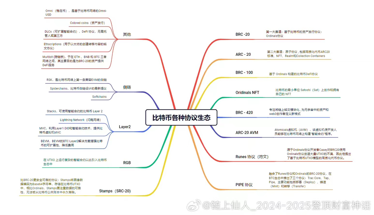 在探索比特币生态的未来脉络时,我们面临着一个双向挑战,一方面是技术革新的推动力,另一方面是现有系统适应性的平衡力。2024 年,这一挑战将显著体现在比特币网络的技术进化上,如 Ordinals、BRC-20、Atomicals、Runes 等新兴协议的引入,它们预示着比特币不再单纯作为价值存储的角色,而是向 NFT 和 DeFi 领域扩展的多维空间。