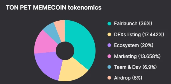 项目背景:Ton Fish 是 Telegram 的社交 Meme 代币,目前市值为 5440 万美元。而 TPET(TON PET)是 Fish 官方发行的第二个 Meme,该代币将用于其发行的社交游戏,此外募资资金的 10% 将用于回购和销毁 FISH。