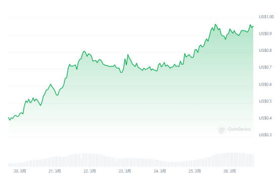 ONDO价格在一周内迅速上涨,来源:Coingecko