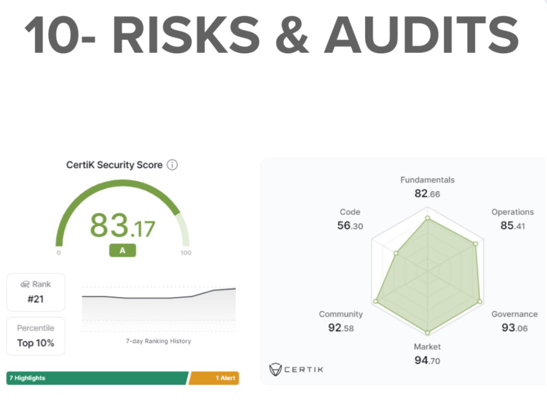 CertiK 安全评分: 83.17 ,项目排名跻身前 10% ,在新发布项目中排名第 21 位。