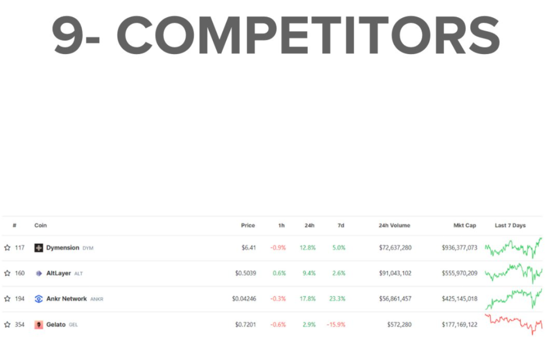 其主要竞争对手 Dymension(DYM)前不久也完成了空投和代币发行。