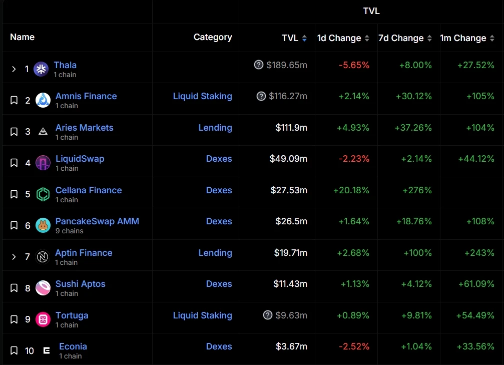 下面我们就 Aptos 生态中 TVL 排名前 5 的项目为大家做一下盘点(据 DefiLama 3 月 20 日数据):