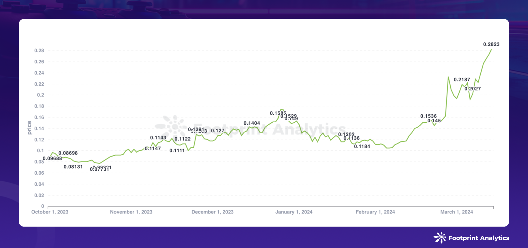 过去 180 天 DAR 代币价格 - Footprint Analytics
