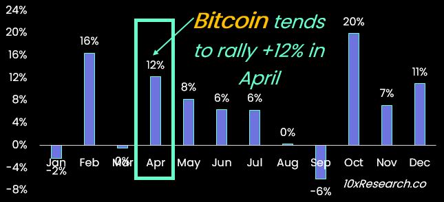 10x Research:4月通常是比特币表现相对强劲的月份