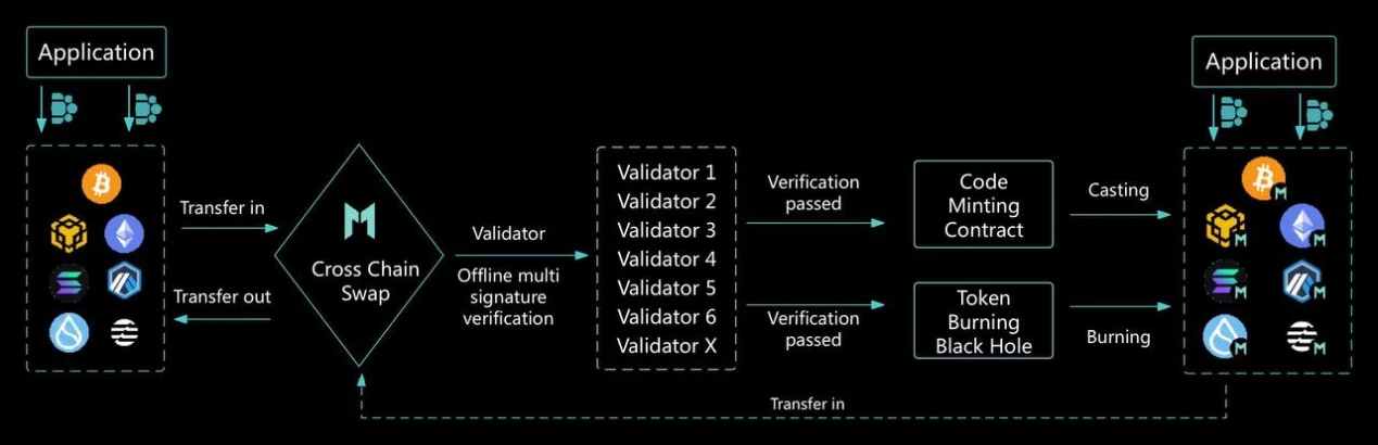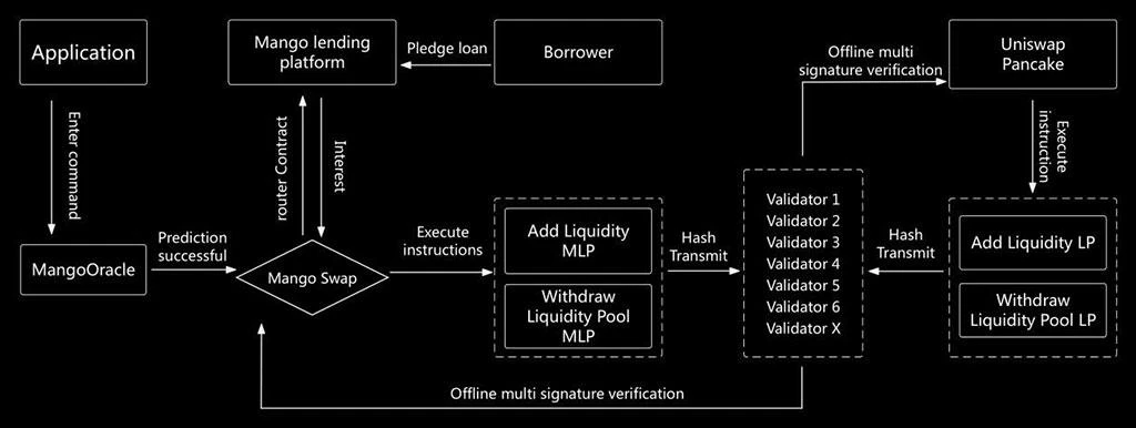 例如,用户可以将 ETH 资产跨链到 Mango 主链的流动性池,通过 Mango 在目标链上的模块合约,与 BNB 链上的 Pancake Swap 进行交互。这意味着,仅持有 BTC 或 ETH 等单一代币资产的用户,也可以参与任意链上的 DeFi 项目,大幅提升了流动性池的潜在规模,从而催生出全链流动性借贷,全链质押,全新闪电贷,全新的算法稳定币等创新的 DeFi 应用。