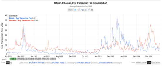 尽管比特币处于领先地位,但实际上人们并没有像以太坊或 Uniswap 那样频繁地使用比特币进行日常转账,即使比特币网络上的平均交易费用为 4.96 美元,现在比以太坊的 10.51 美元低两倍。结果,比特币中的大部分巨额资金仍然处于未被利用和休眠状态。此外,随着 Ordinals 和 BRC-20 等 NFT 在比特币上的兴起,仅仅加剧了第一层网络的压力,导致更多拥堵和费用增加。