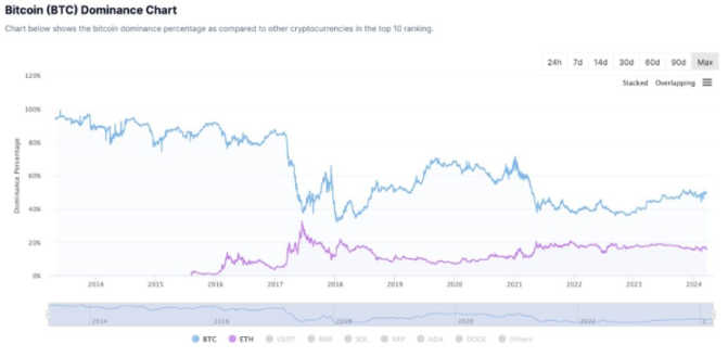 尽管比特币目前的市场份额约为 50 %,但这一数字在长期内稳步下降。而且这个差距可能会变得更大。以太坊正在快速向着全数据分片迈进(正如我们在这篇文章中所解释的,这可能真正改变游戏规则),而比特币不能落后。外部竞争正加大力度,要求提供更好的可扩展性解决方案。