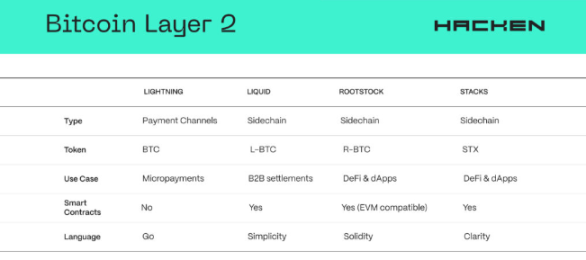 Stacks、闪电网络、Liquid 和 RSK 被统称为 L2 中的「四巨头」。它们在游戏中时间最长,因此受到了最广泛的采用。更为新颖的 L2 包括 Babylon、MintLayer、Ark、Botanix 和 RGB。特别是,RGB 致力于让闪电网络支持智能合约。