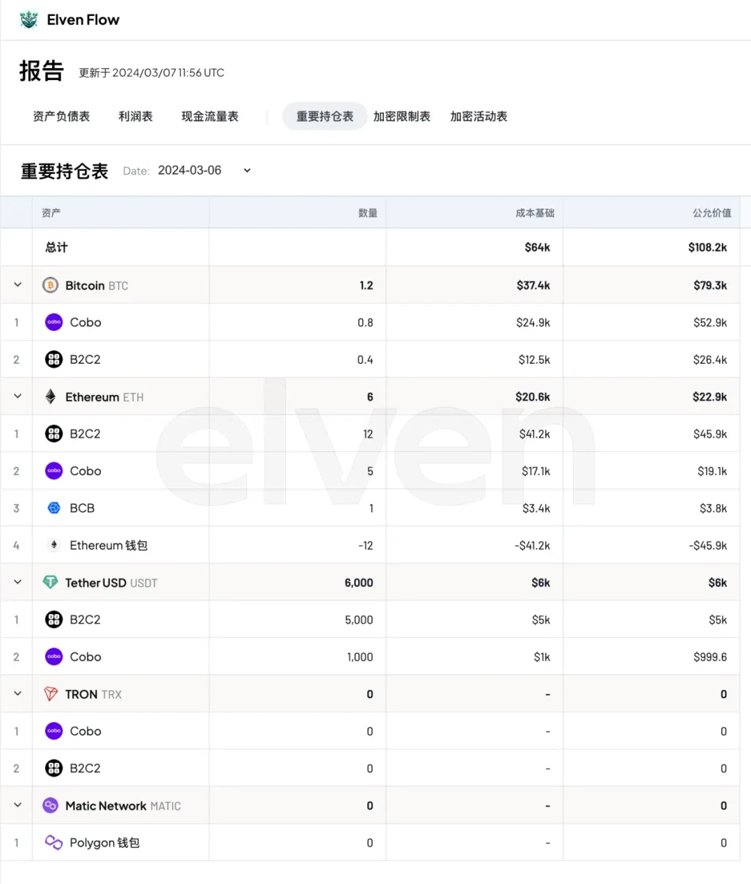 产品特色包括打通法币和加密货币混合记账,一站式满足数据、会计、估值、合规、报告需求等。目前 Elven 已通过 SOC 2 安全审计,所有数据均经加密脱敏后存储和计算,严格确保信息安全。Elven 参与了 2023 年 US GAAP 加密资产公允价值会计准则更新的咨询,也是新加坡 Singapore Fintech Association (SFA) 和 Digital Asset Association (DAA) 的会员。