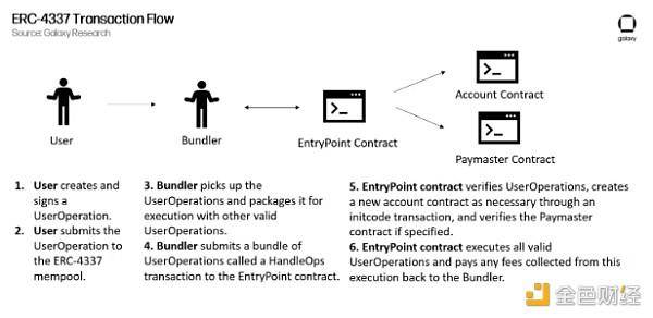 以下是 ERC 4337 定义的 UserOperations 事务执行流程的高级说明。