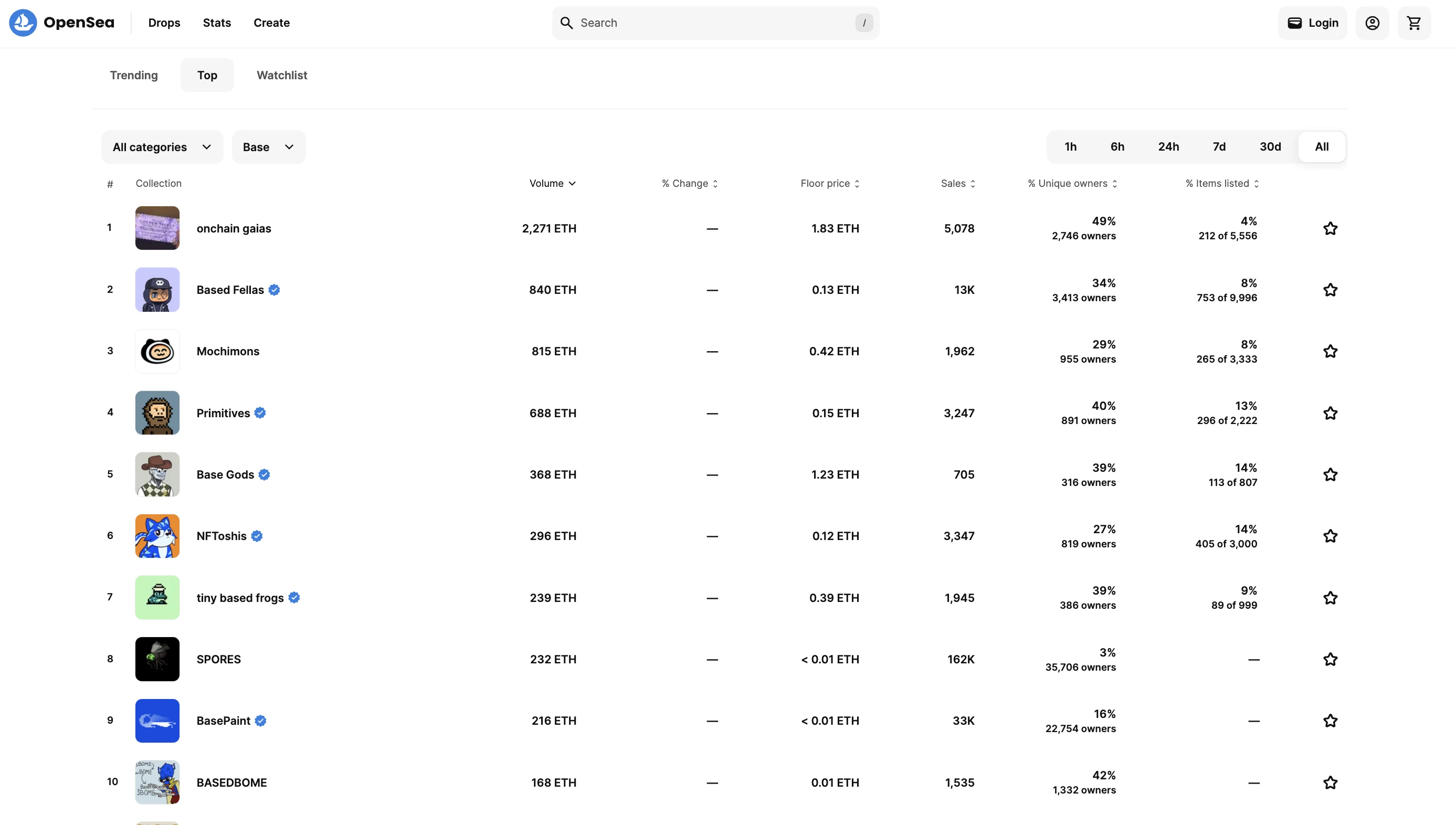 Base 链 NFT 项目相对较少,处于 NFT 初期发展阶段,排行前列的 NFT 合集项目多为 Memecoin 相关项目,所以我们在这里只简单介绍 2 个近期在 Base 链有一定动作的项目。