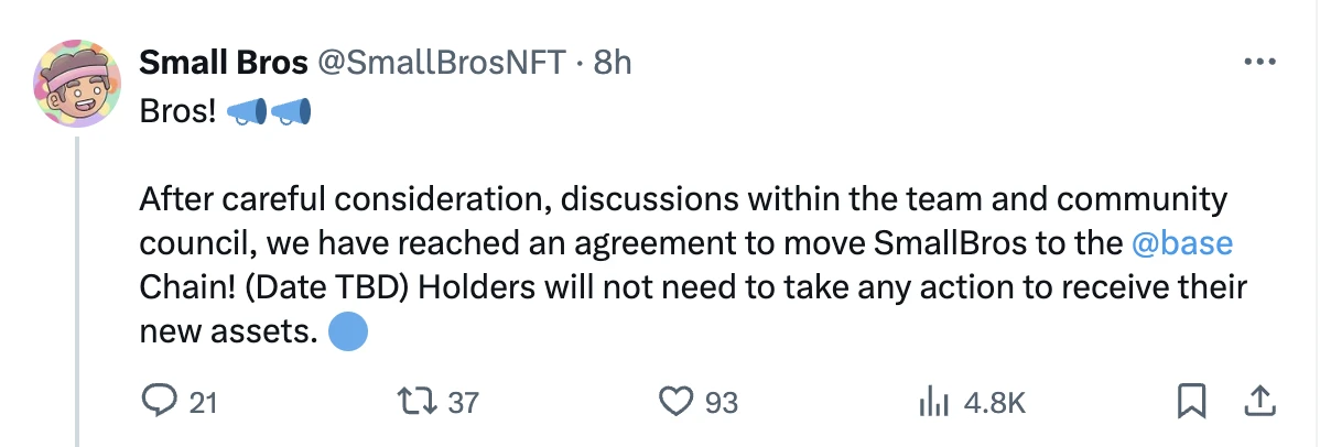 近期从 ETH 链迁移到 Base 链的一个 NFT 合集,发售于 2022 年 5 月。