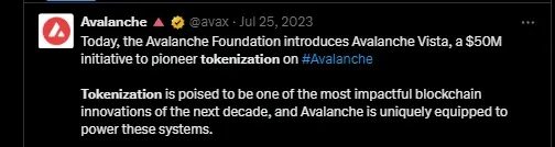 虽然 Avalanche 主要以成为各种 dApp 的L1平台而闻名,但其团队也在向代币化和机构采用方面投入了大量精力。