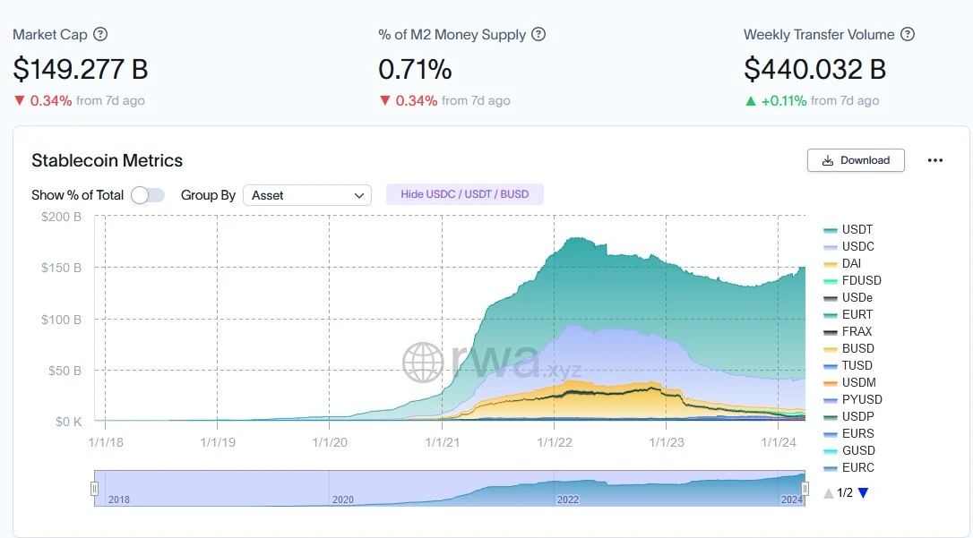 举例而言,目前大家所为最熟知的 RWA 代币化项目就是 USDT 和 USDC。二者的形成原理一致:项目公司储备美元,再铸造对应数量的 USDT/USDC,将美元代币化为稳定币,从而达到了美元代币化的目的。