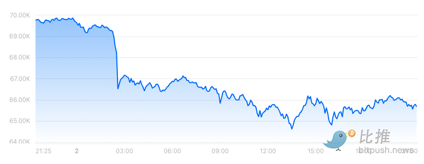 比特币当天已经大幅下跌,该消息传出后,比特币进一步下跌,跌破 65,000 美元,此后略有反弹。
