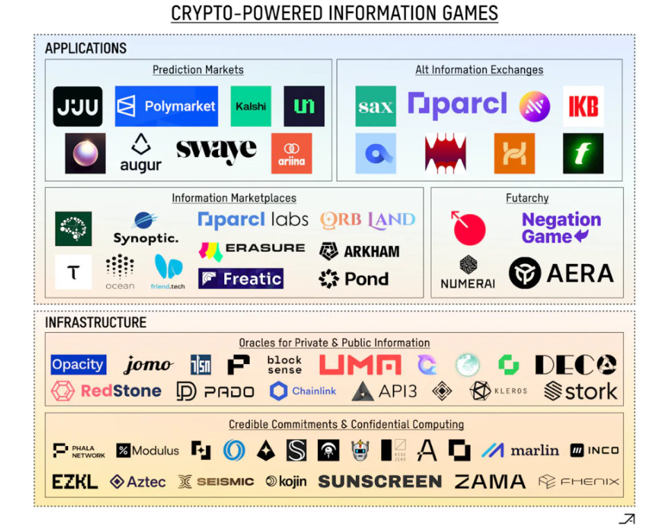 从预测市场到博弈论、预言机和可信执行环境网络,本文将涵盖创建这些基于加密货币的信息游戏的设计空间,并介绍实现其全部潜力所必需的基础设施。
