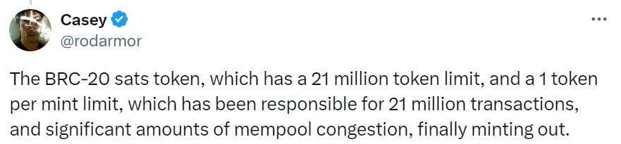 BRC 20 与 Runes 协议均为基于 Ordinals 协议的同质化代币分配协议,BRC 20 协议自发布以来,不少 BRC 20 代币产出,其中包括著名的 ORDI、SATS 等,但是由于协议本身的局限性,产生了大量 UTXO 集,过多信息被存储上链导致比特币内存池拥塞,并且持续拉高 gas,进行铭刻代币的行为也对比特币生态正常运行起到了反噬作用。Oridnals 协议创始人曾公开表示对 BRC 20 协议的不满,并希望社区能停止铸造 BRC 20 代币。