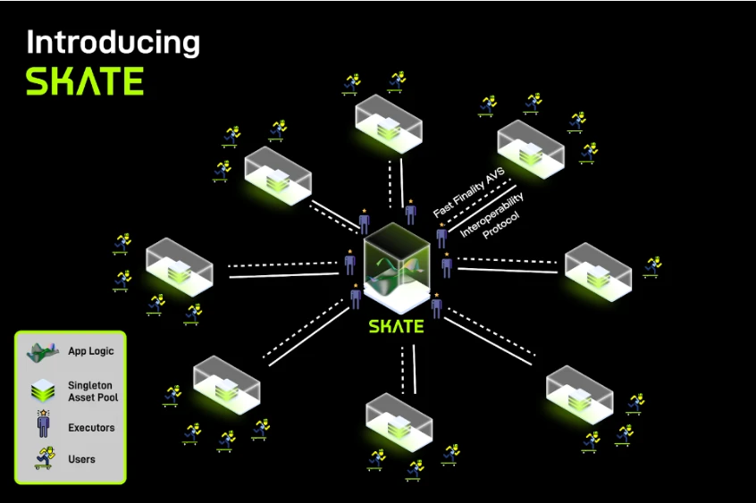 Skate 引入了 全链应用层 (Universal Application Layer) 的概念,即 Skate 维护一个可供所有链访问的单一状态集和应用逻辑的集合。