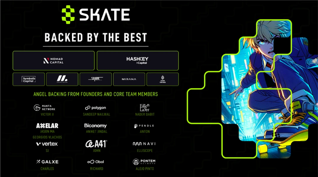 最近,Skate 获得了来自 EigenLayer、Polygon、Manta、Axelar、Biconomy、Pendle、A 41、Vertex、Navi、Pontem、Galxe 等 Web3 创业团队的支持。
