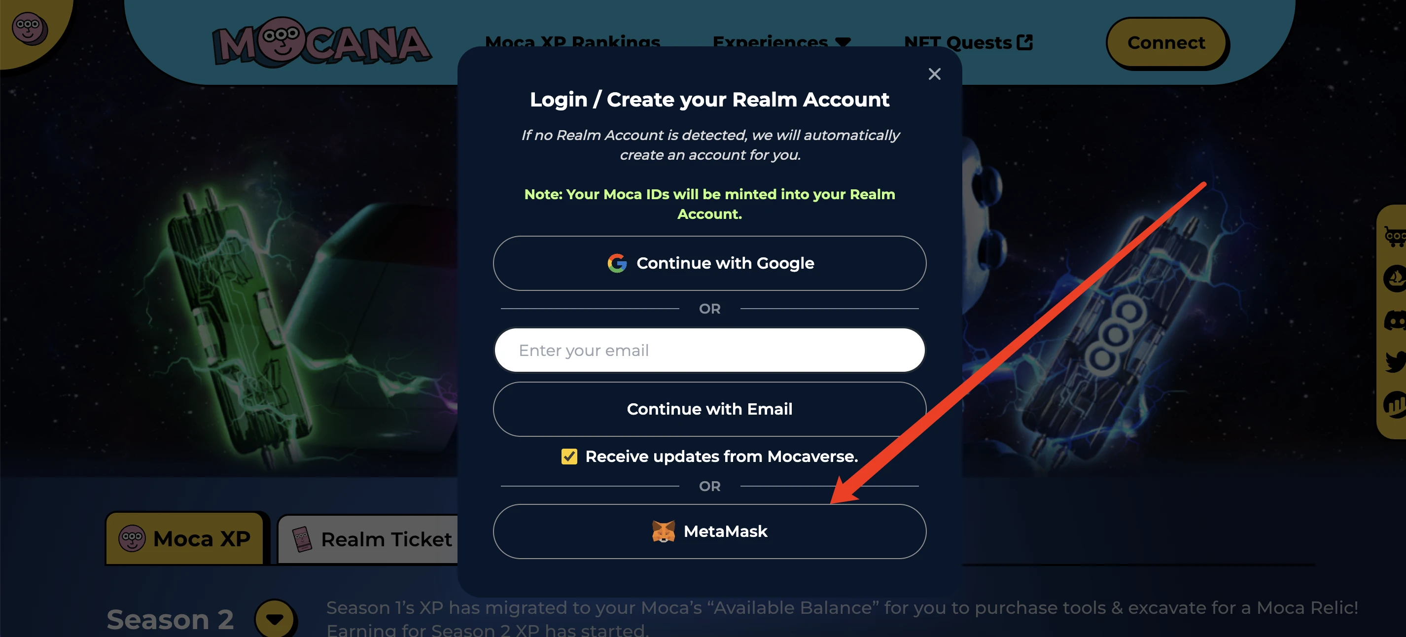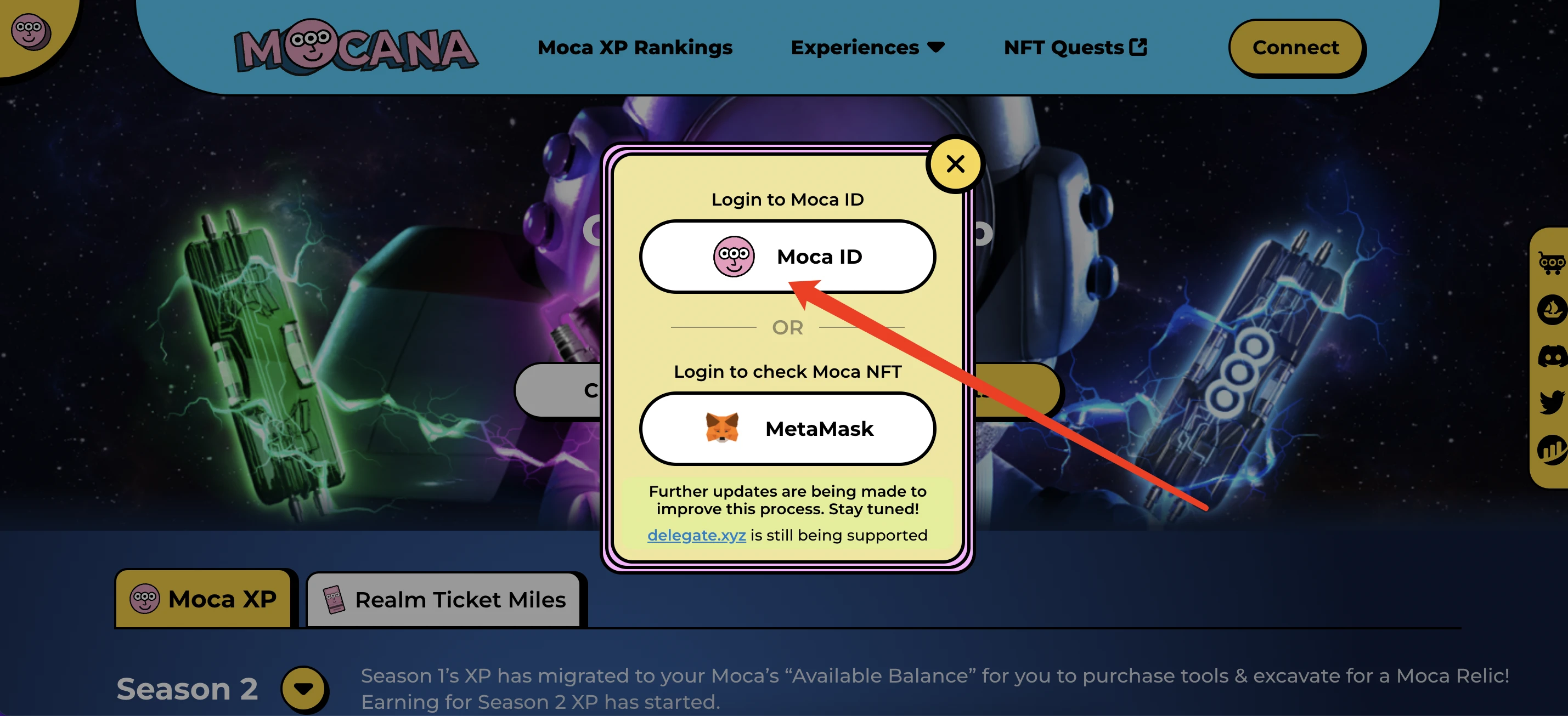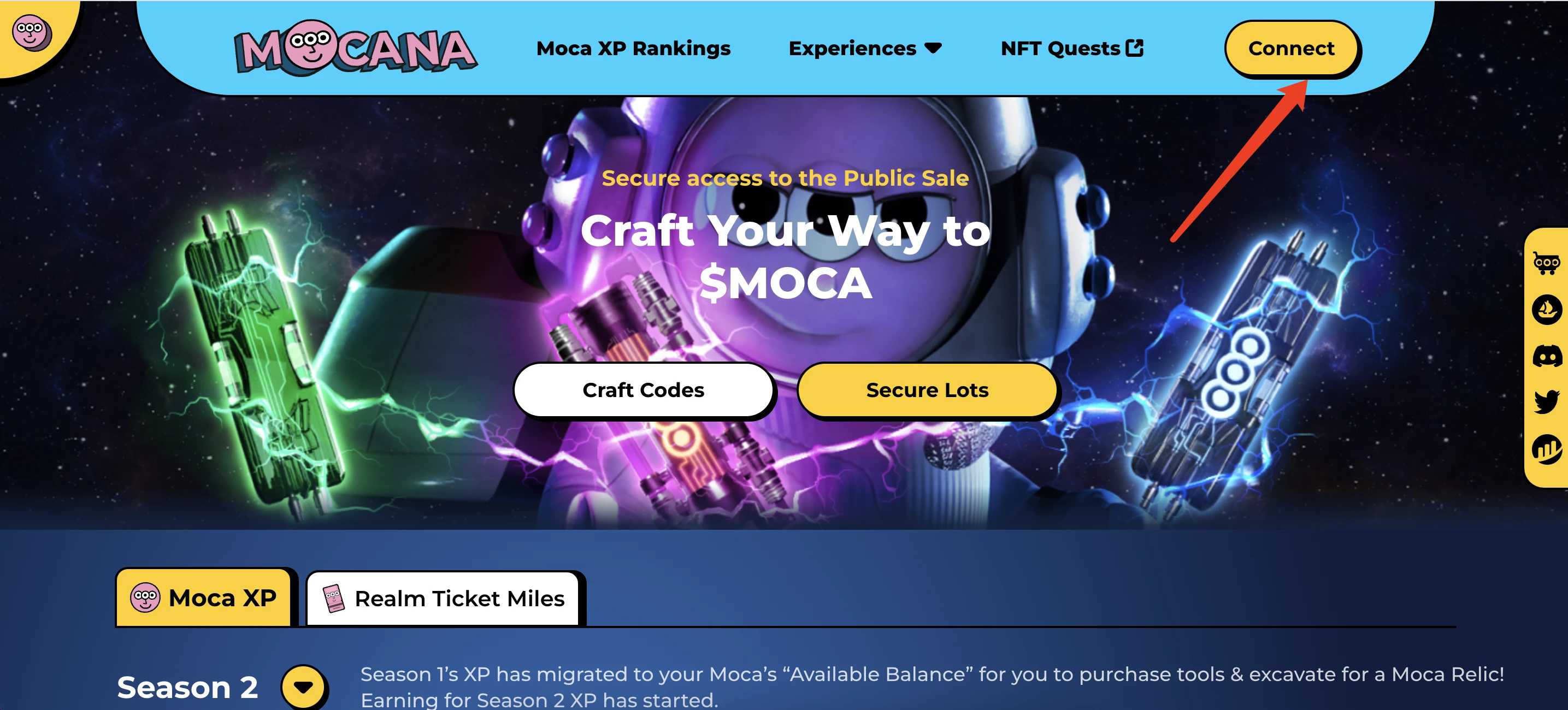 STEP 1. 进入注册网站后,点击“Connect”并选择“Moca ID”