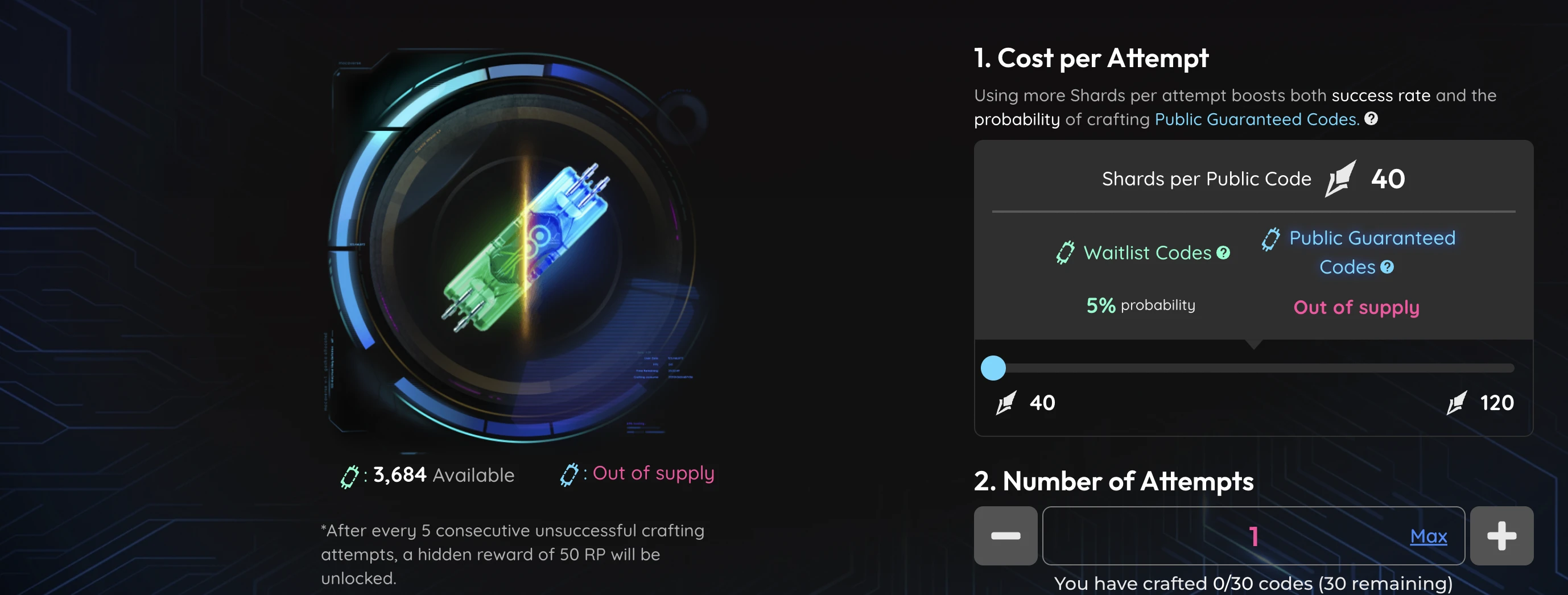 蓝票、绿票这两种额度在消耗碎片随机获得后以 Code 的形式存在,Code 码可以交易,但进行额度激活后便不可转移。根据官方信息,一个 Moca ID 账号最多只能激活 3 份保证份额或 10 份候补份额,且两者之和不能超过 10 份。