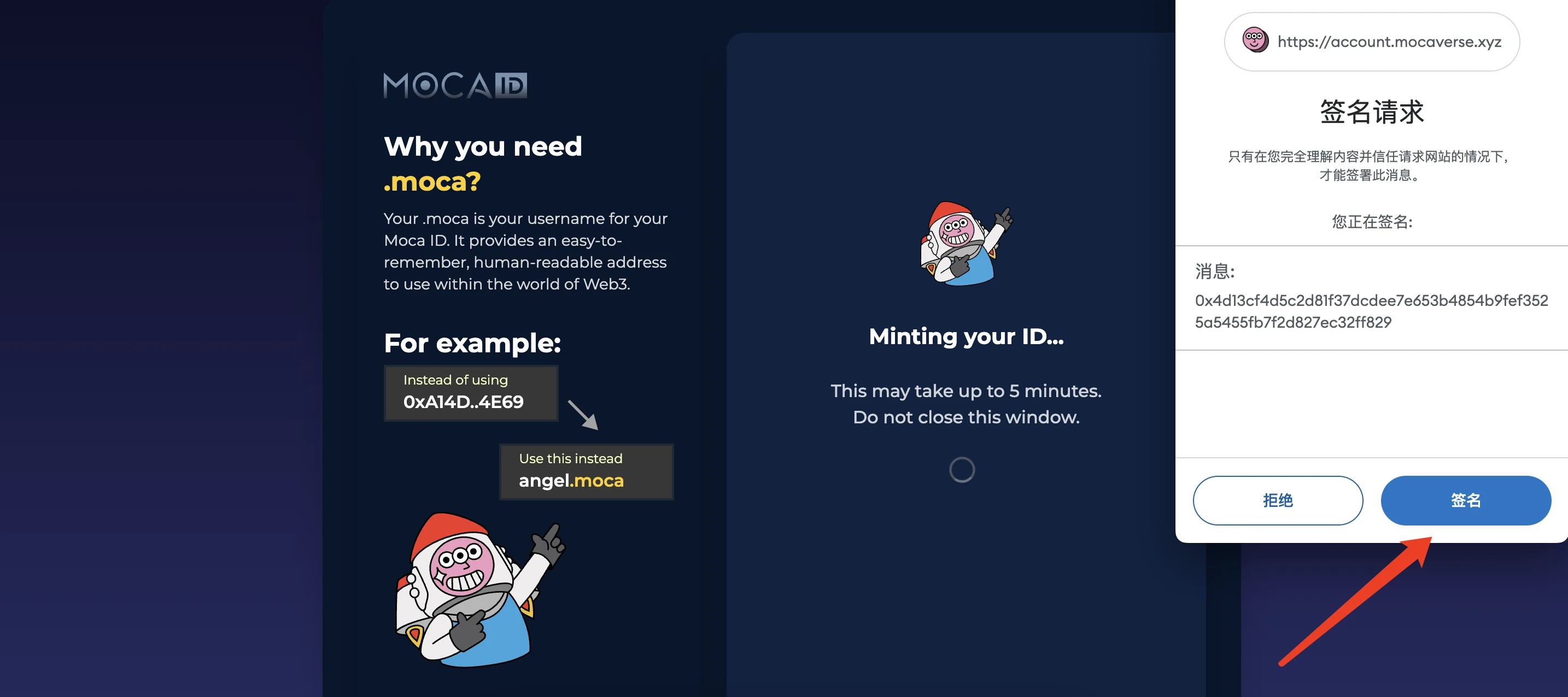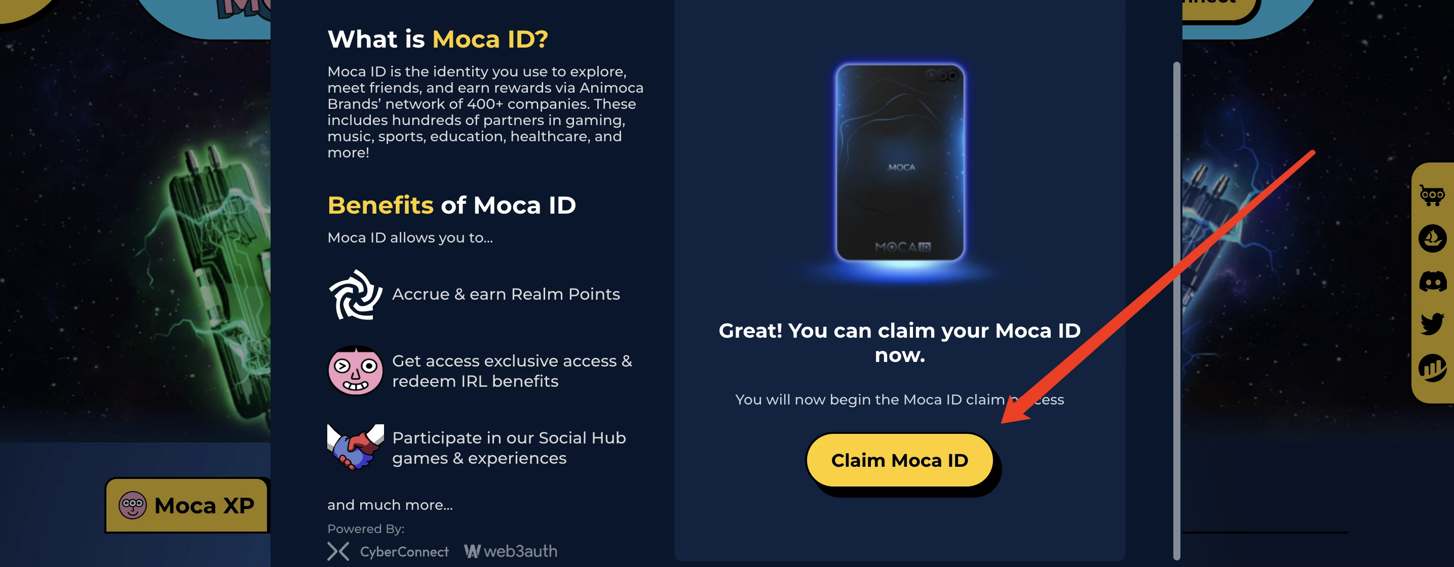 STEP 2. 点击“MetaMask”注册后点击“Claim Moca ID”