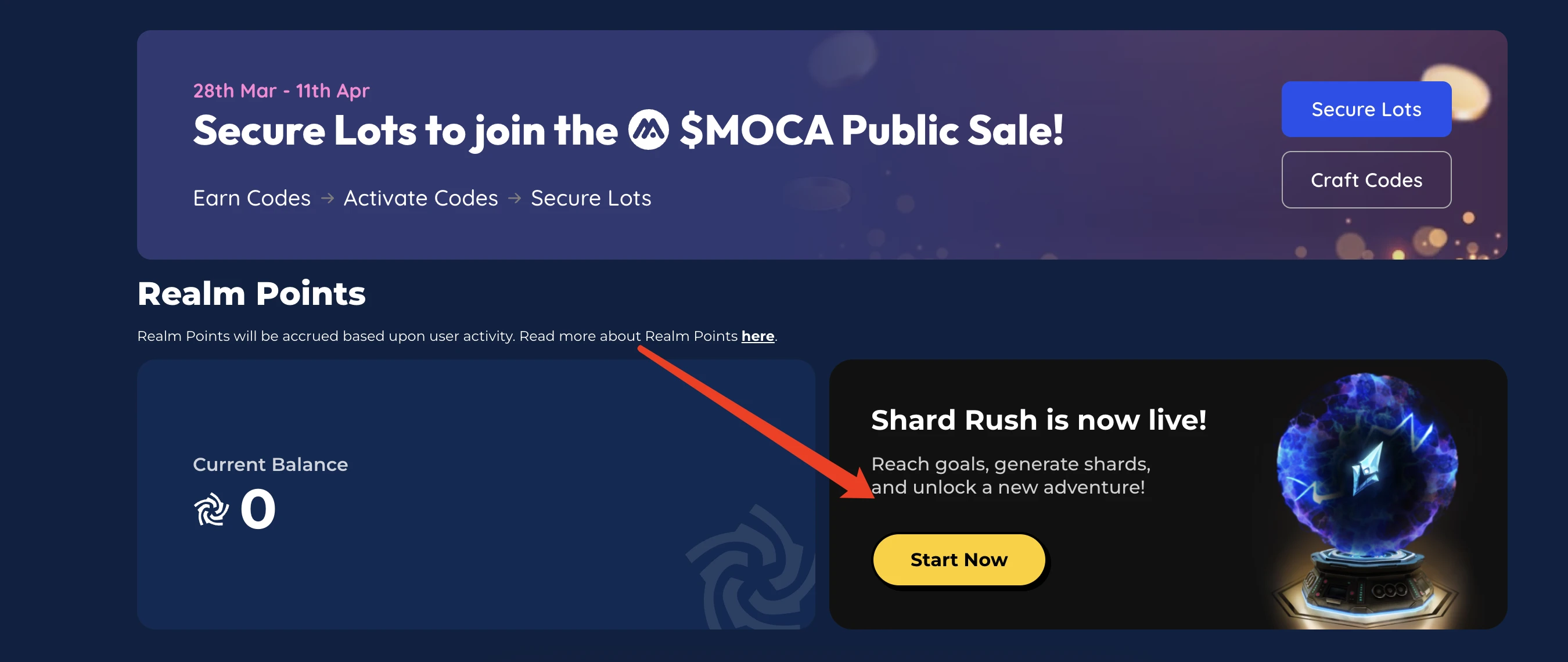 目前,获得公售份额的方式主要是官方推出为期近 2 周的碎片活动,通过消耗碎片随机抽奖蓝票、绿票。进入 个人界面 后,选择“Start Now”即可进入碎片挖矿活动。