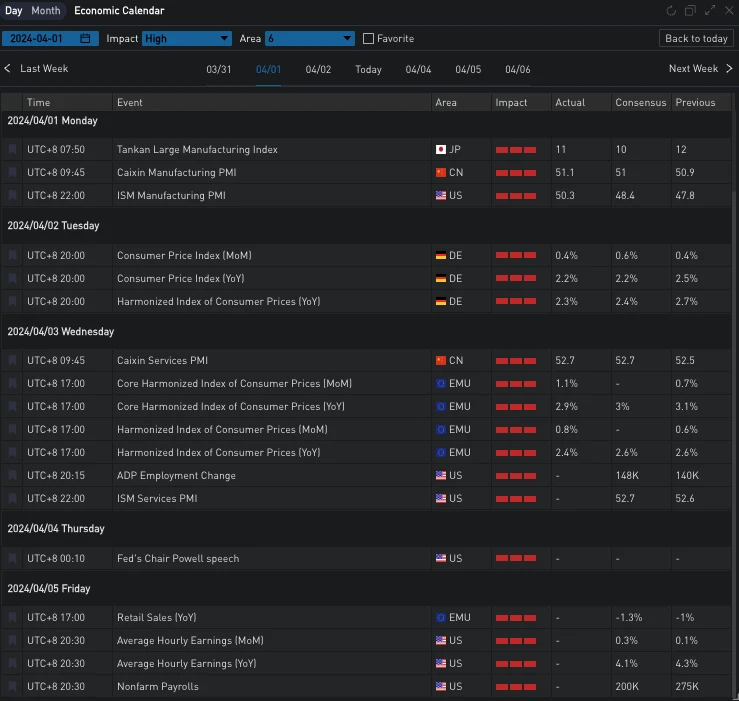 Source: SignalPlus, Economic Calendar;本周将公布美国非农就业指数,每小时工资等数据