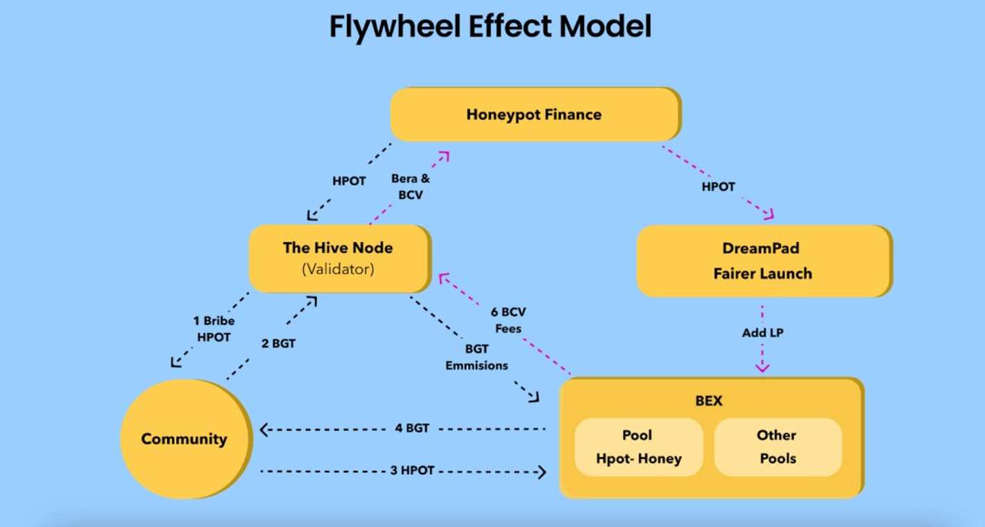与 Infrared 的想法类似,HoneyPot Finance 也提供了一套将 Berachain 的 PoL 退化为用户更为熟知的 PoS 的针对 BGT 的质押解决方案。与 Infrared 吸收用户的流动性资产,给予用户 iBGT 流动性凭证的思路不同,HoneyPot Finance 则是通过平台币贿赂的方式,接收用户委托的 BGT,通过收益治理的方式激励用户使用贿赂平台币提供的流动性池,获得 BGT 排放,形成 POS。除此之外,HoneyPot Finance 还推出了针对长尾资产公平发射的 Launchpad,以及优化长尾资产交易的 Batch AMM 模型,旨在成为 Berachain 上长尾资产发行交易的流动性基础设施。