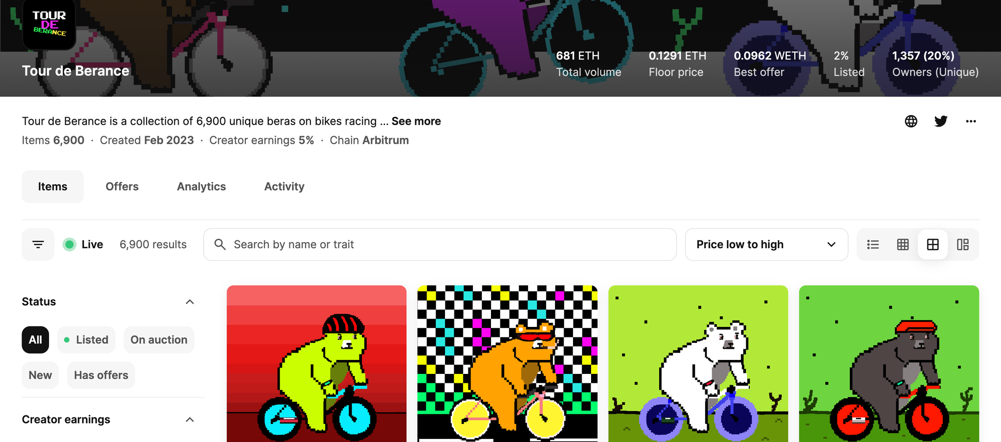 值得注意的是,Beradrome 已经与 The Honey Jar 达成了合作,二者将会合作运行一个 BeraChain 的验证者节点。此外 Beradrome 还发行了自己的 NFT Collection Tour de Berance,NFT 持有者可以获得更高的 hiBERO 分配权以及投票权。