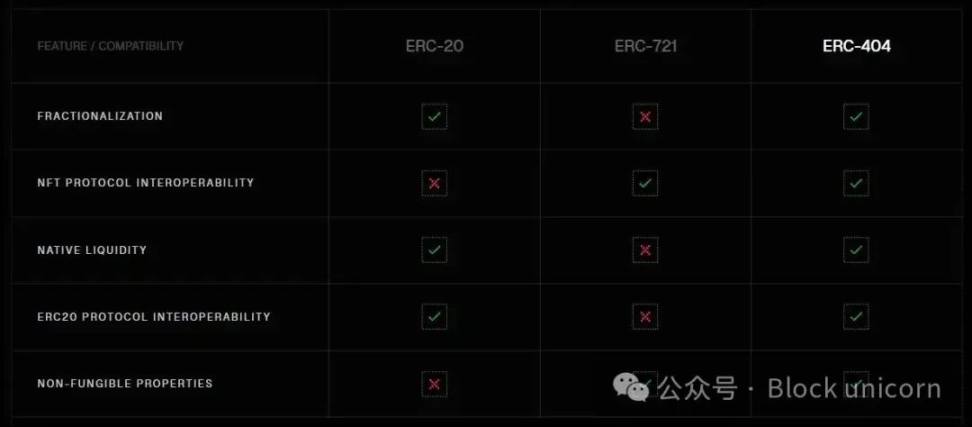 ERC-404 与其他代币标准对比 | 图片来自 Pandora 网站