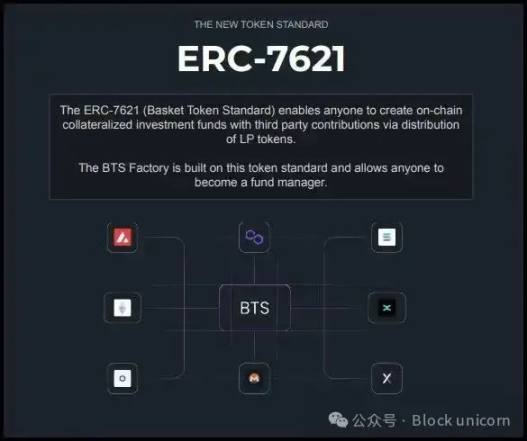 ERC-7621 是由 Alvara Protocol 开发的新代币标准。它旨在创建和管理链上多代币资产组合和投资组合。它提供了在以太坊区块链上部署代币篮子标准的框架。单个 BTS 代币可以封装 ERC-20 代币的任意组合,类似于传统金融中的共同基金,从而促进了链上基金管理。
