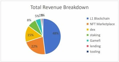 1) Layer 1 (区块链中的基础主链)的收入 48% , 占比接近总收入的一半,其商业模式可以理解为“ 出售区块空间 ”;