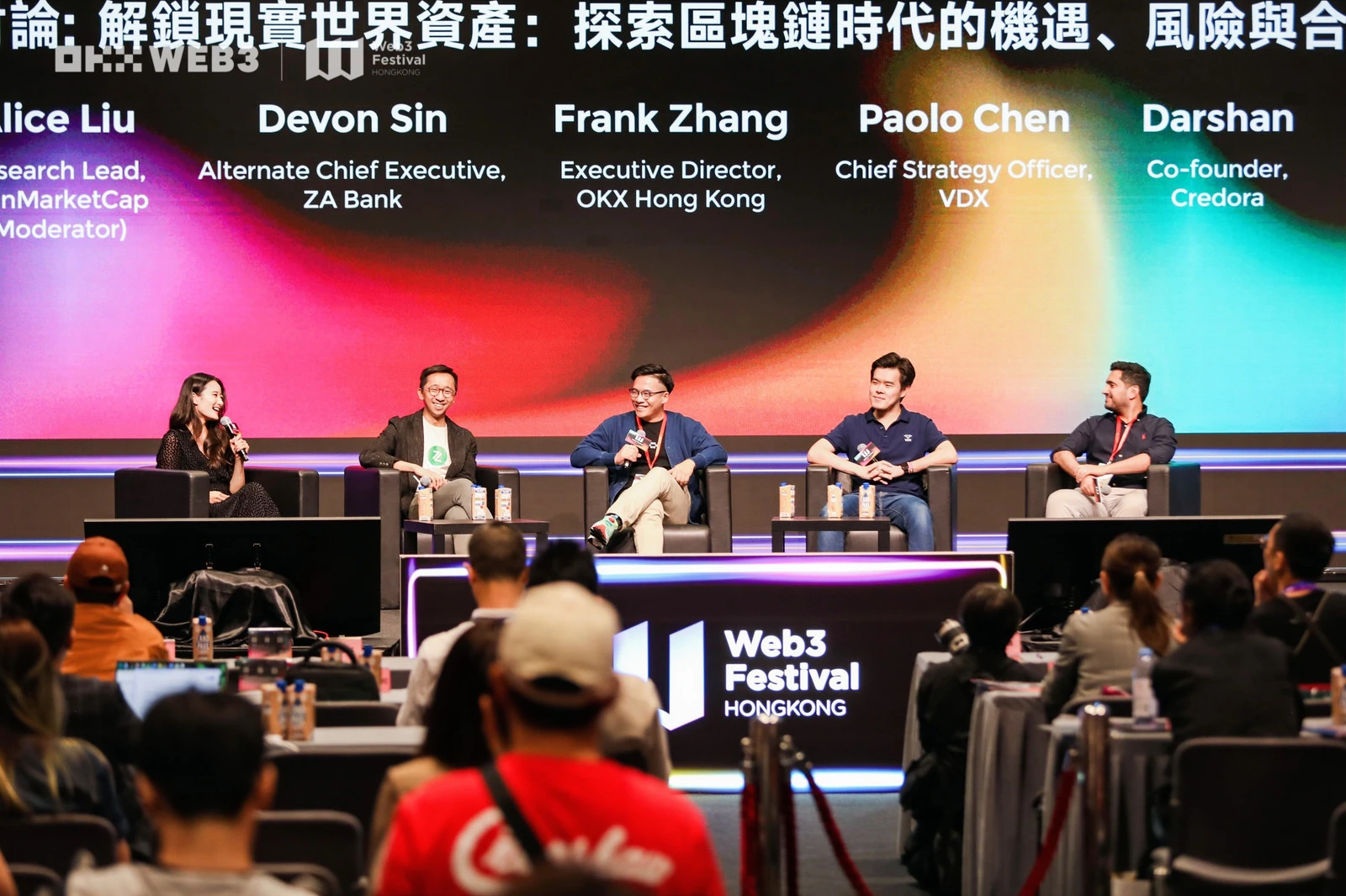4 月 6 日,在 2024 香港 Web3 嘉年华期间举办的《解锁 RWA:洞察区块链时代的机遇、挑战与合作》圆桌论坛活动圆满收尾。OKX 香港执行董事 Frank Zhang 与 ZA 银行总经理 Devon Sin、VDX 首席战略官 Paolo Chen、Credora 联合创始人 Darshan Vaidya 等业内资深人士就 RWA(Real World Asset On-Chain)领域的机遇、风险管控策略及传统金融与去中心化金融生态等议题展开了深入探讨。