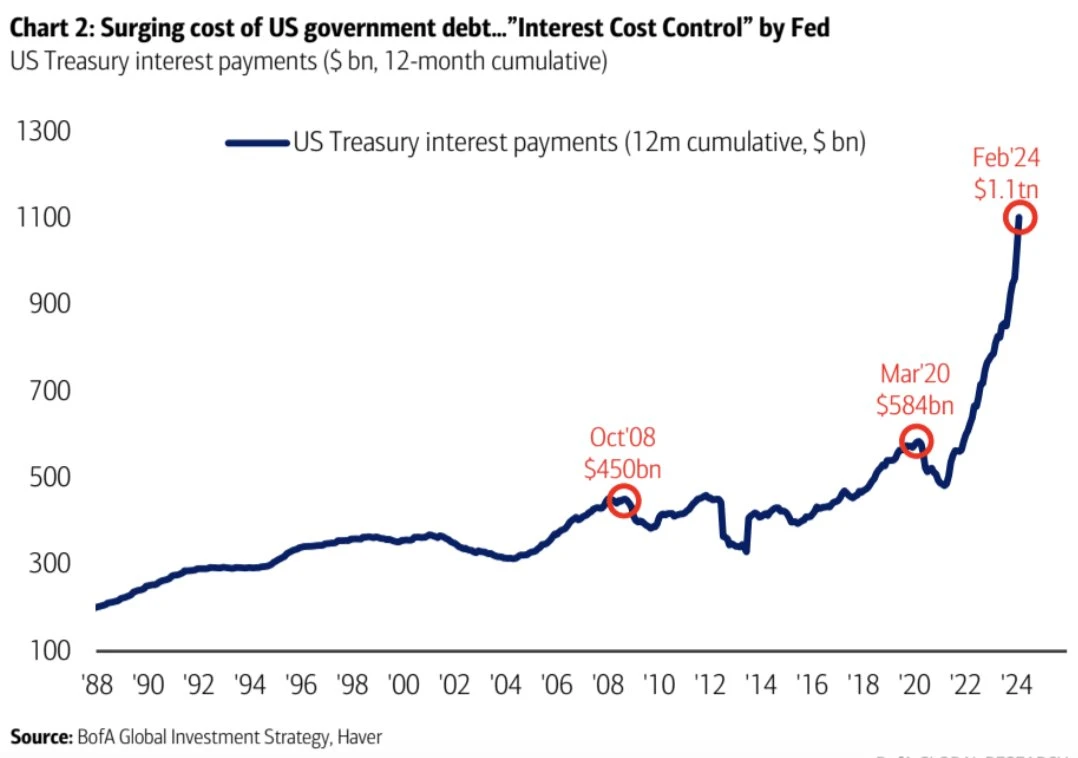 美债利息规模(美国银行制图)