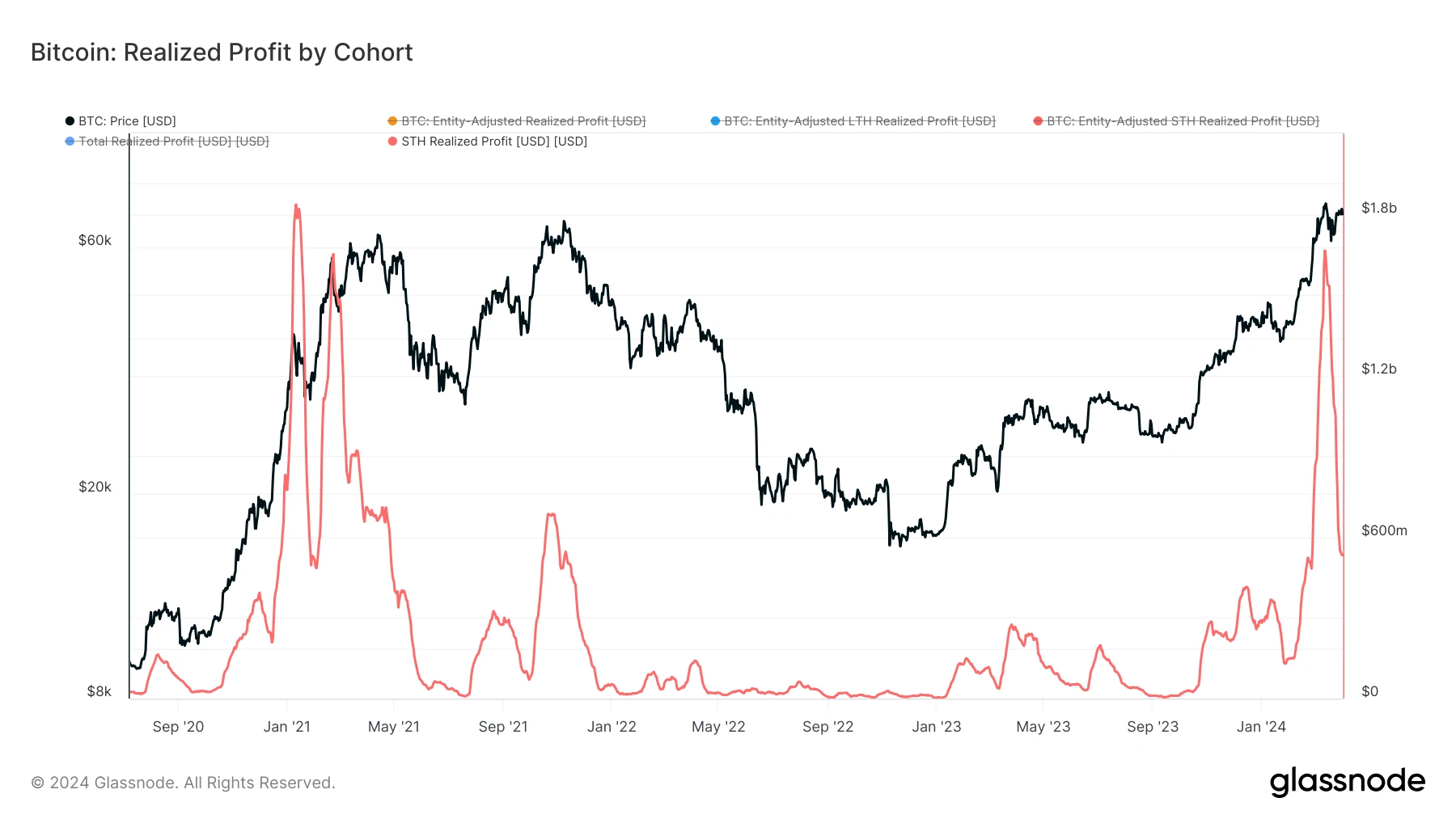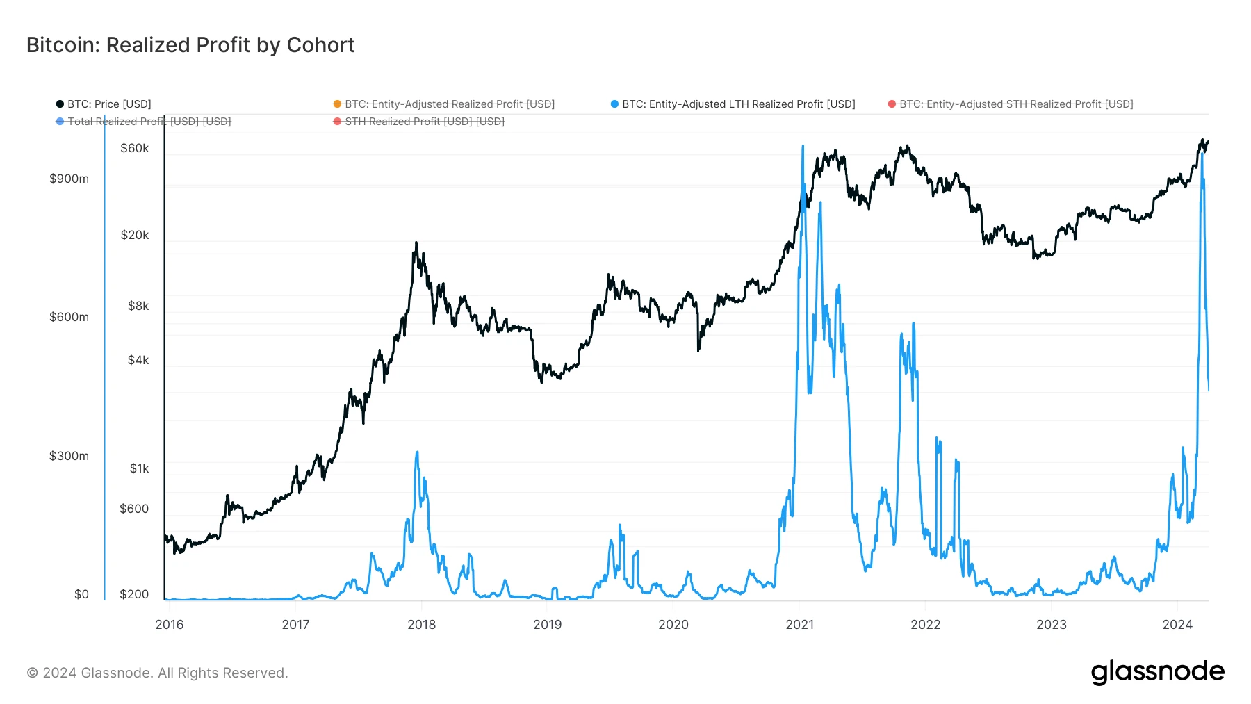 BTC 连续 7 个月上涨追平历史记录。无论是长手还是短手,都积累了大量未实现利润。伴随上升期价上升,锁定利润的卖出规模开始成为市场关注重点之一。