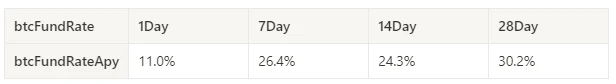 表格显示 BTC 的资费过去不同持有天数的平均收益