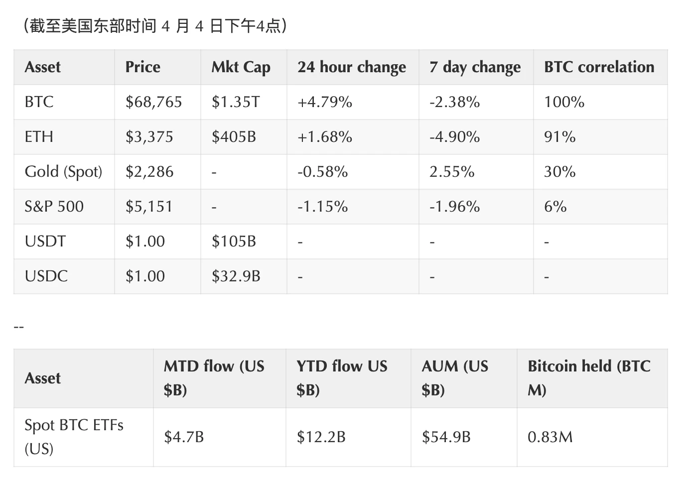 美联储主席 Jerome Powell 在 3 月 29 日和 4 月 3 日的会谈中表示,对降息持谨慎态度,此后,加密货币市场大幅走低。市场方向的不确定性并非仅仅反应在加密货币市场,股票和其他风险资产在过去一周的表现也很一般。再加上对再通胀的担忧,年底前降息的隐含幅度(基于联邦基金期货)甚至在 2024 年首次变得比美联储更为鹰派。截至 4 月 4 日,市场预计年终利率为 4.631 ,远高于 1 月初预测的 3.825 (也高于美联储点阵图中位数目标的 4.625)。