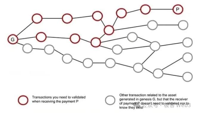在 RGB 网络中,如果有人要给你转账,必须让他先出示资产证明,回溯资产从初始发行到多次转手的历史来源,确定要转给你的 Token 没问题,这就好比,当你收到来路不明的纸币后,你要求对方说明这些纸币的历史来源,是否是指定的发行方制造的,以此来规避假币。