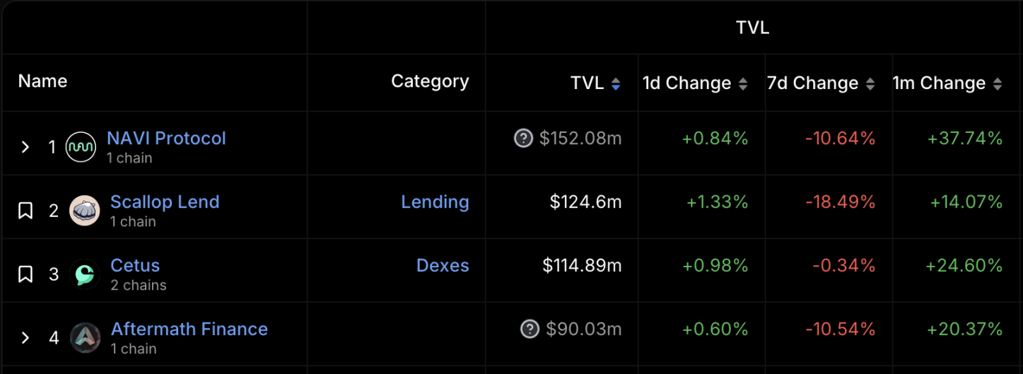 DefiLlama 上 Sui 生态协议 TVL 排行
