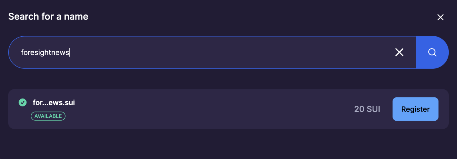 需要注意的是,不必为成为域名持有者前往 SuiNS 官网以 20 SUI 一年起的价格注册域名,可以前往 tradeport 等 NFT 交易平台以更便宜的价格购买。