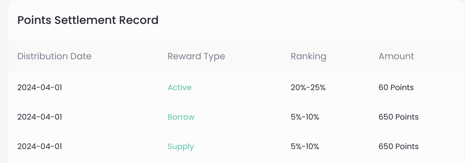 前往 Navi 官网进行存款和借款,积分会在每周一根据存款、借款金额的相对排位结算。每周的存款和借贷分数均是 1000 分封顶,排位靠后则分数减少,如排在 5% ~ 10% 获得 650 分。除存、借外,还有每周封顶 200 分的活跃分。
