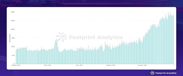 数据来源: 区块链游戏每日活跃用户数 - Footprint Analytics