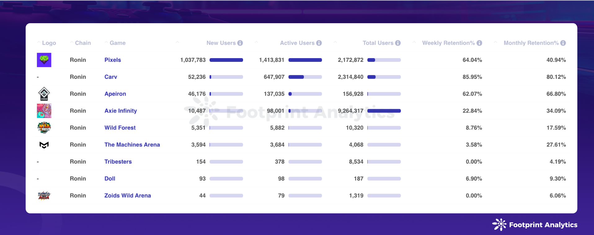 数据来源: Ronin 热门游戏 - Footprint Analytics