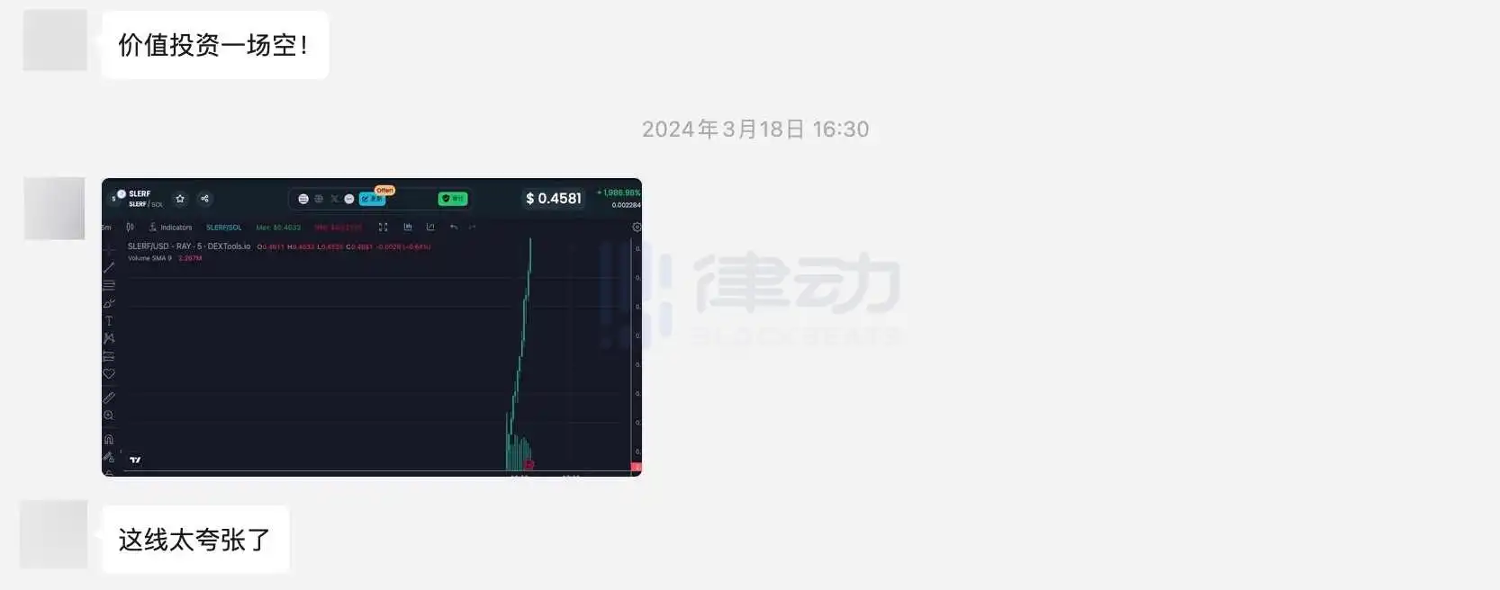 BOME 持续发力,部分选手的资产更是较初始资金翻了 35 倍。在当时预售打款的热潮下,Slerf 又以十分 drama 的开局方式迎来了 meme 第二波高潮,让一些群友再次致富。